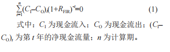 盈利能力判定指標由項目資本金內部收益率體現。即在擬定的融資方案下,從項目資本金出資者整體的角度,確定其現金流入和現金流出,編制項目資本金現金流量表,利用資金時間價值原理進行折現,計算項目資本金內部收益率RFIR[6],計算式為: