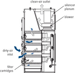 | 全新概念,將濾材褶高從標(biāo)準(zhǔn)的2英寸(50mm) 縮短至1.5英寸(38mm),避免了折疊、壁塌或彎折令灰塵積聚在夾縫中的可能性。堅固的短褶濾筒, 能使反吹清潔更有效。 |